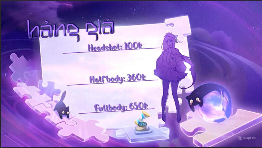 • Vui lòng xem kỹ sample trong mục Gallery để biết rõ về style của mình trước khi đặt commission.